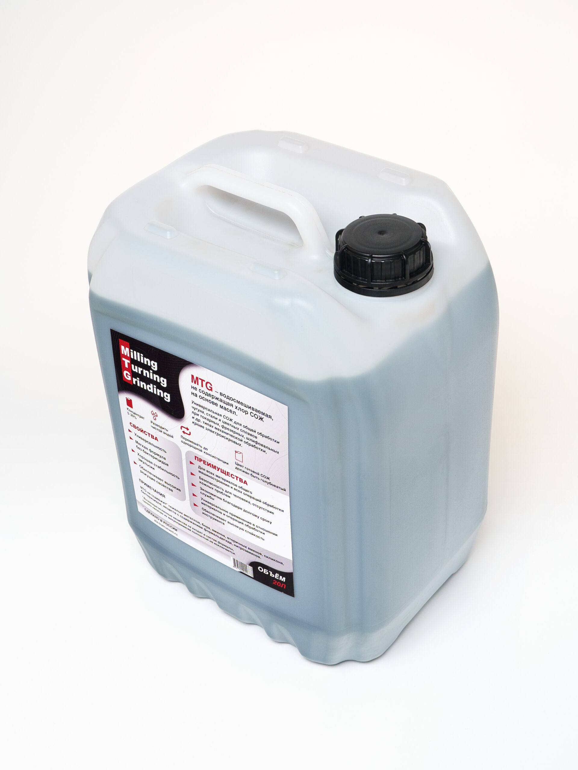 Смазочно-охлаждающая жидкость MTG для любых лезвийных операций даже высоколегированными сталями. СОЖ выполняет высокие требования, как по чистоте обрабатываемых поверхностей, так и по стойкости инструмента.